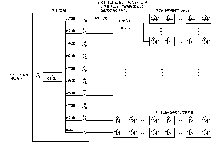 默認10分路 (每路可直接控制夜燈或經(jīng)由接線箱控制) |